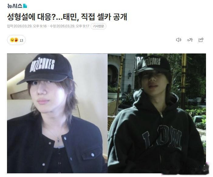 近日,韩国男子组合SHINee成员泰民通过社交媒体平台晒出自拍,疑似回应近期沸沸扬扬的整容传闻。